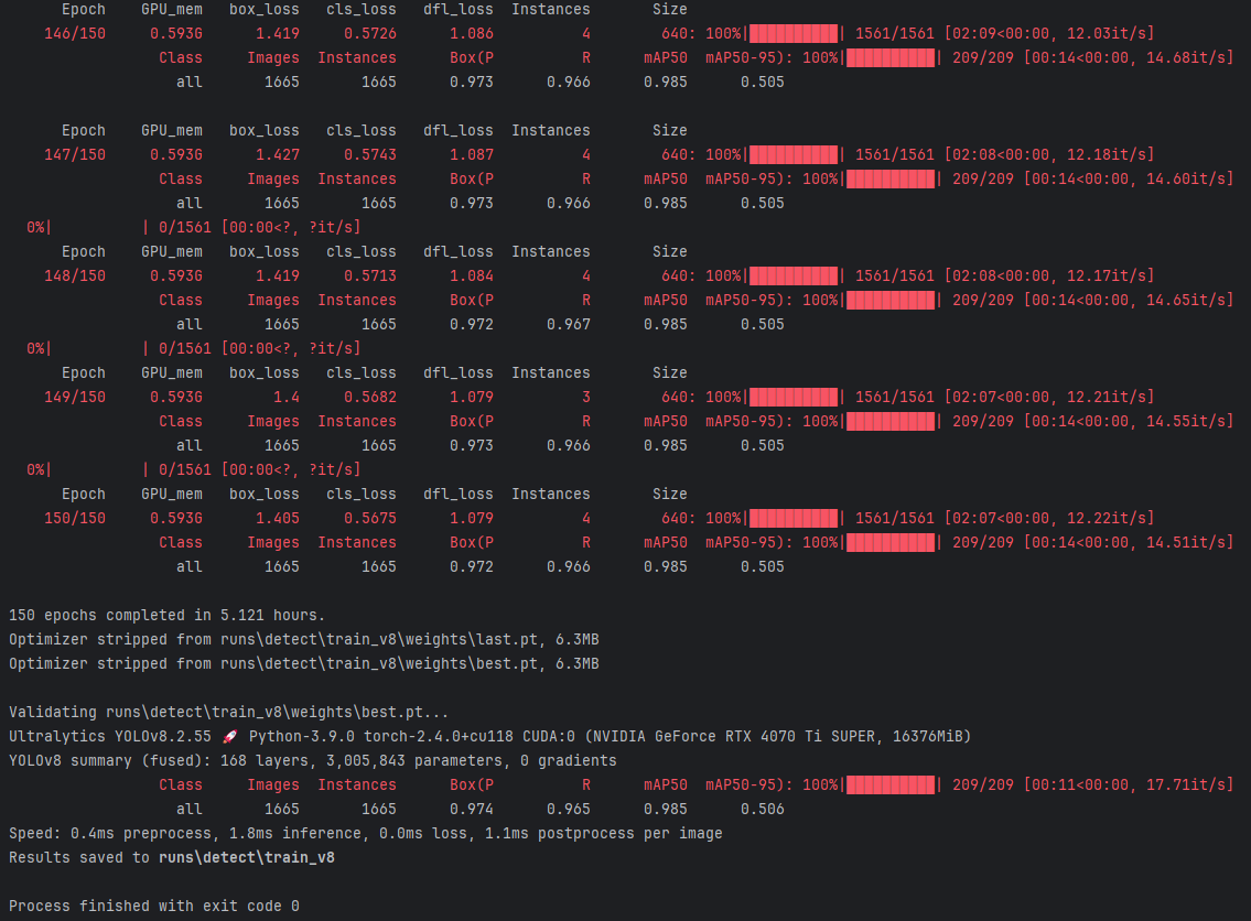 (1)模型在训练了150轮后,总共耗时5.121小时。