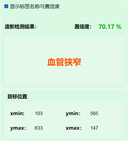 (1)这表示模型对检测到的目标属于“狭窄血管”类别的置信度为70.17%。