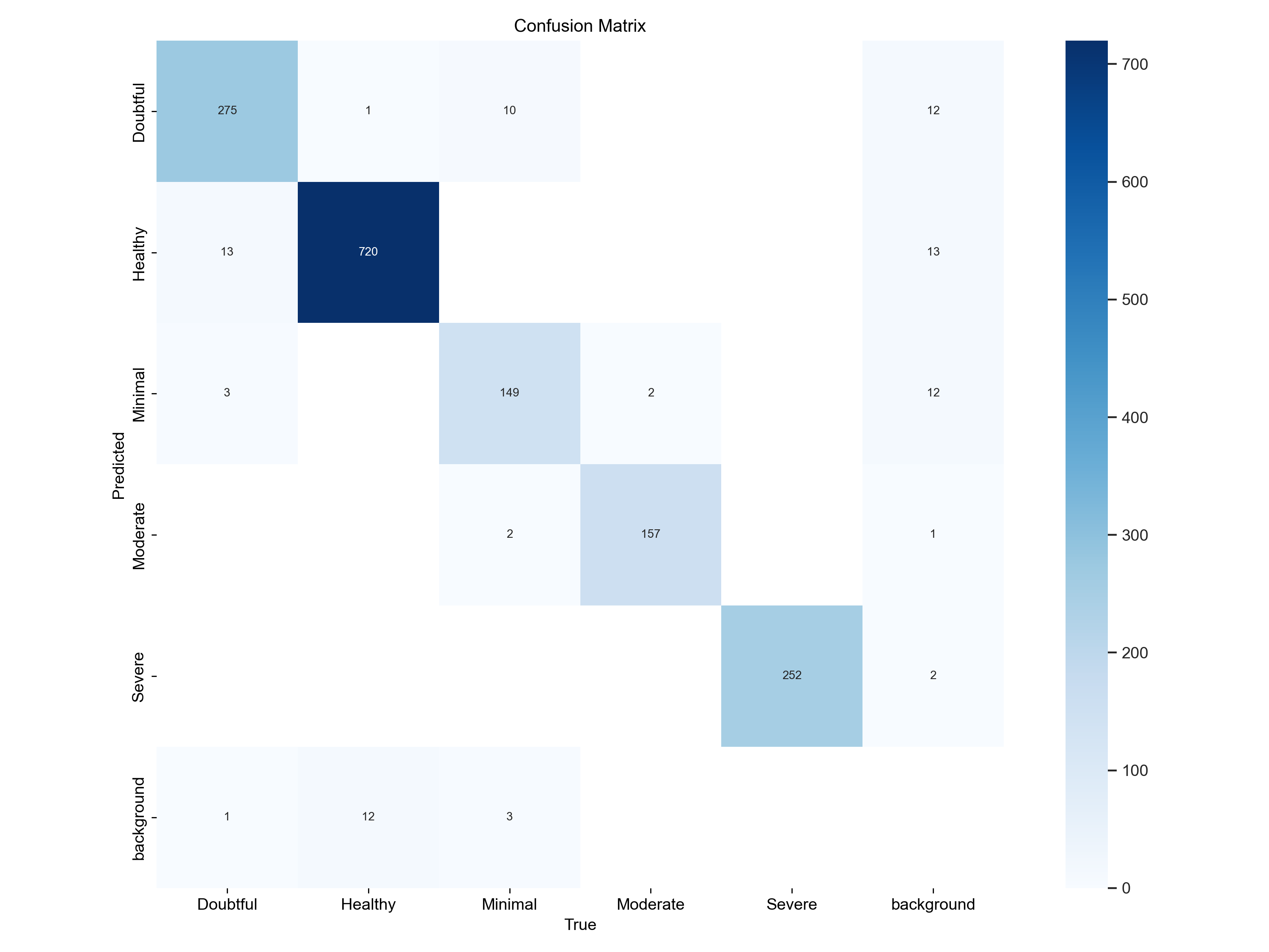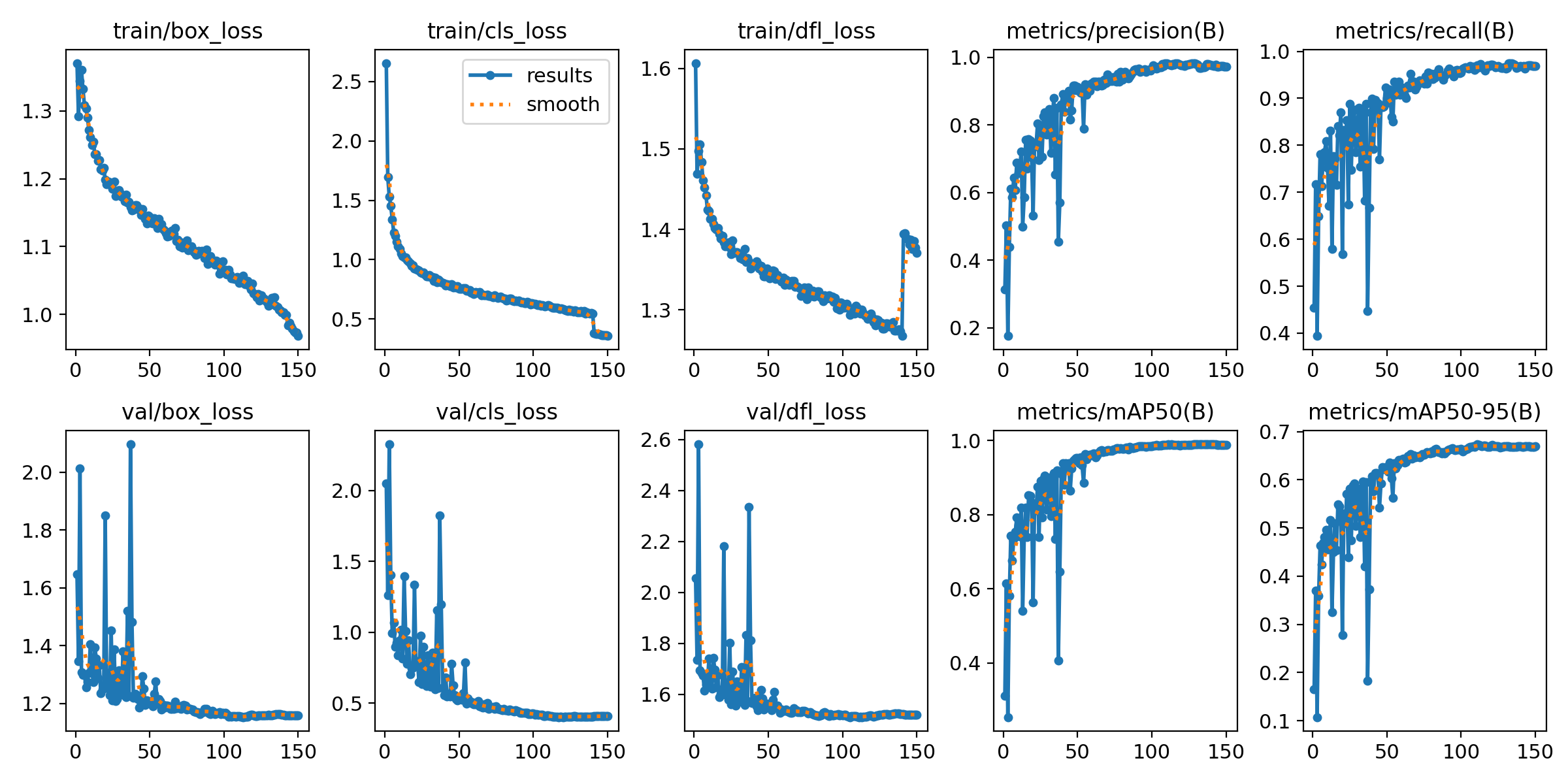 (3)表现出较高的训练效率,得益于YOLOv8模型的优化设计和高性能硬件的支持。