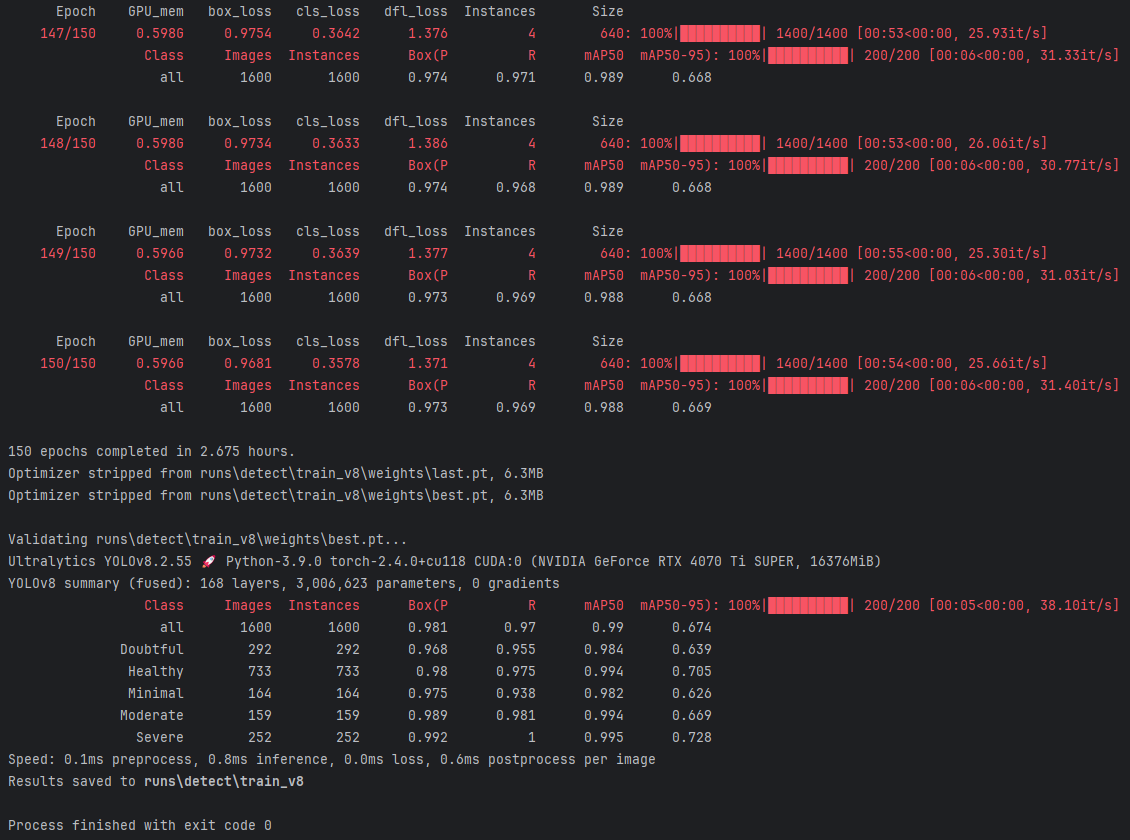 (1)模型在训练了150轮后,总共耗时 2.675 小时。