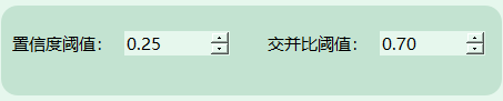 (2)交并比阈值:当前设置为0.70,表示系统只会认为交并比(IoU)超过70%的检测框为有效结果。交并比是检测框与真实框重叠区域的比值,用于衡量两个框的相似程度,值越高表明重叠程度越高。
