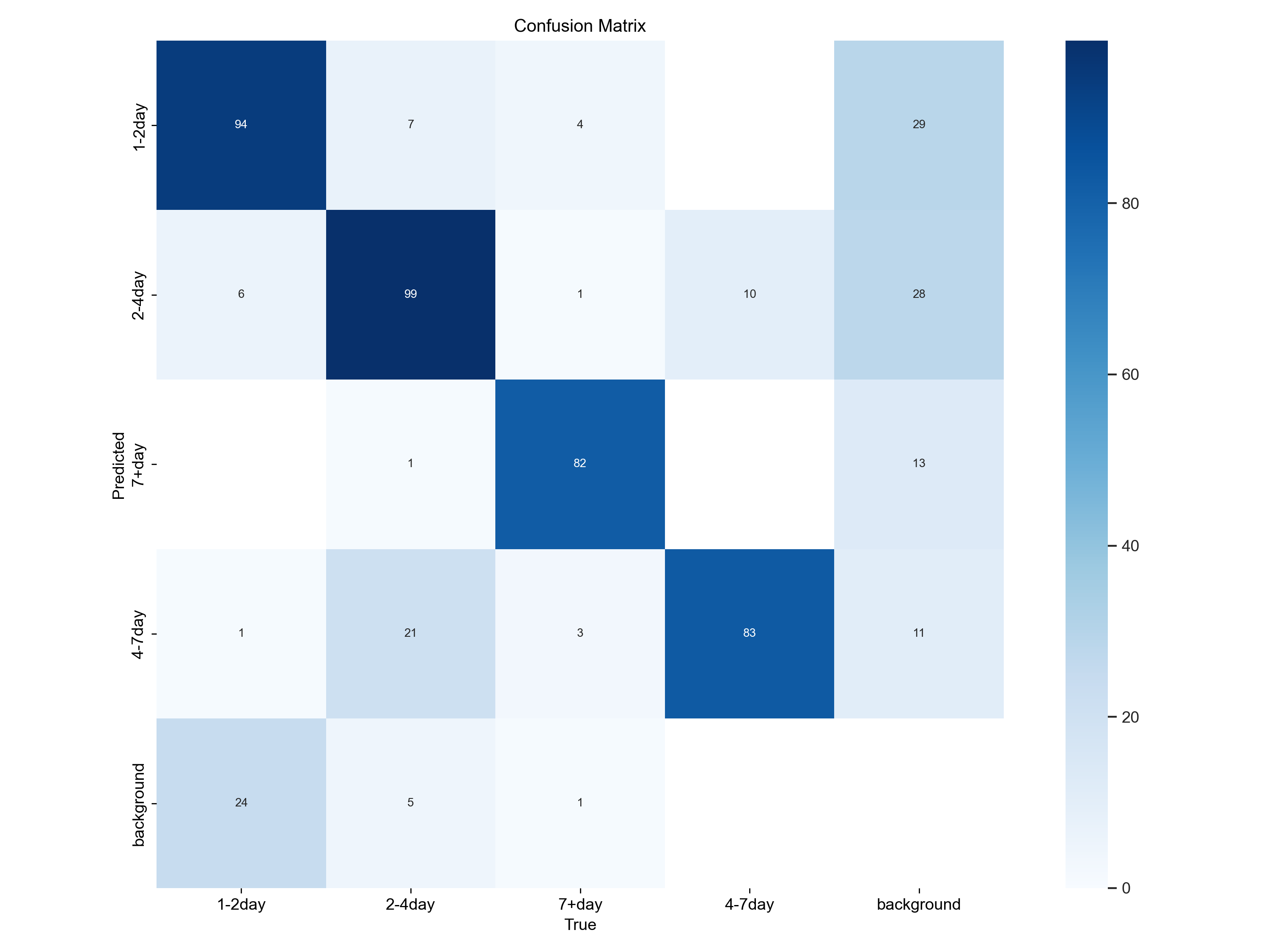 (1)检测到图像中的1 个目标,其类别是 “7+day”。