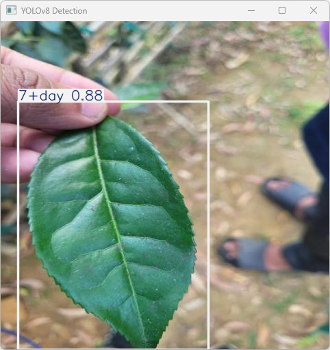 结果(Result):“三级茶叶(7天以上)”,表示系统正在高亮显示检测到的“7+day”。