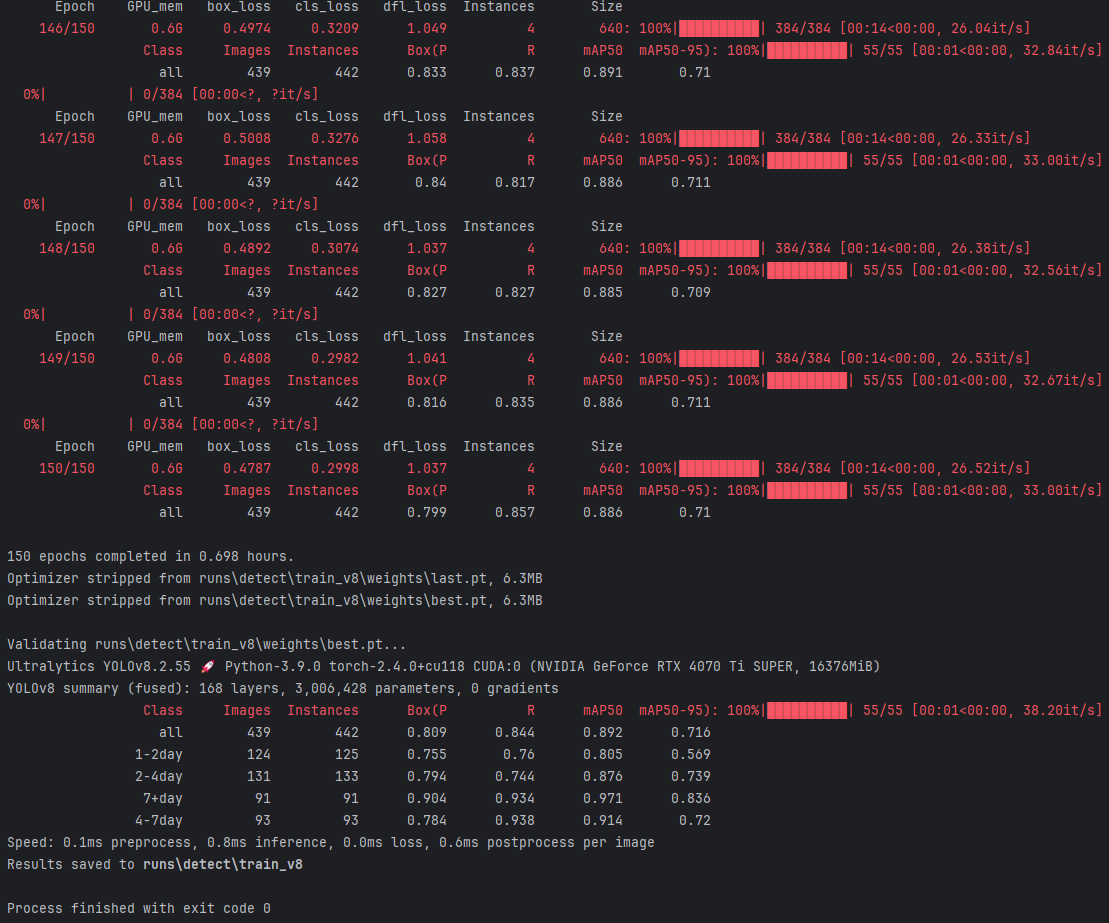 (1)模型在训练了150轮后,总共耗时 0.698 小时。