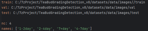 这个文件定义了用于模型训练和验证的数据集路径,以及模型将要检测的目标类别。