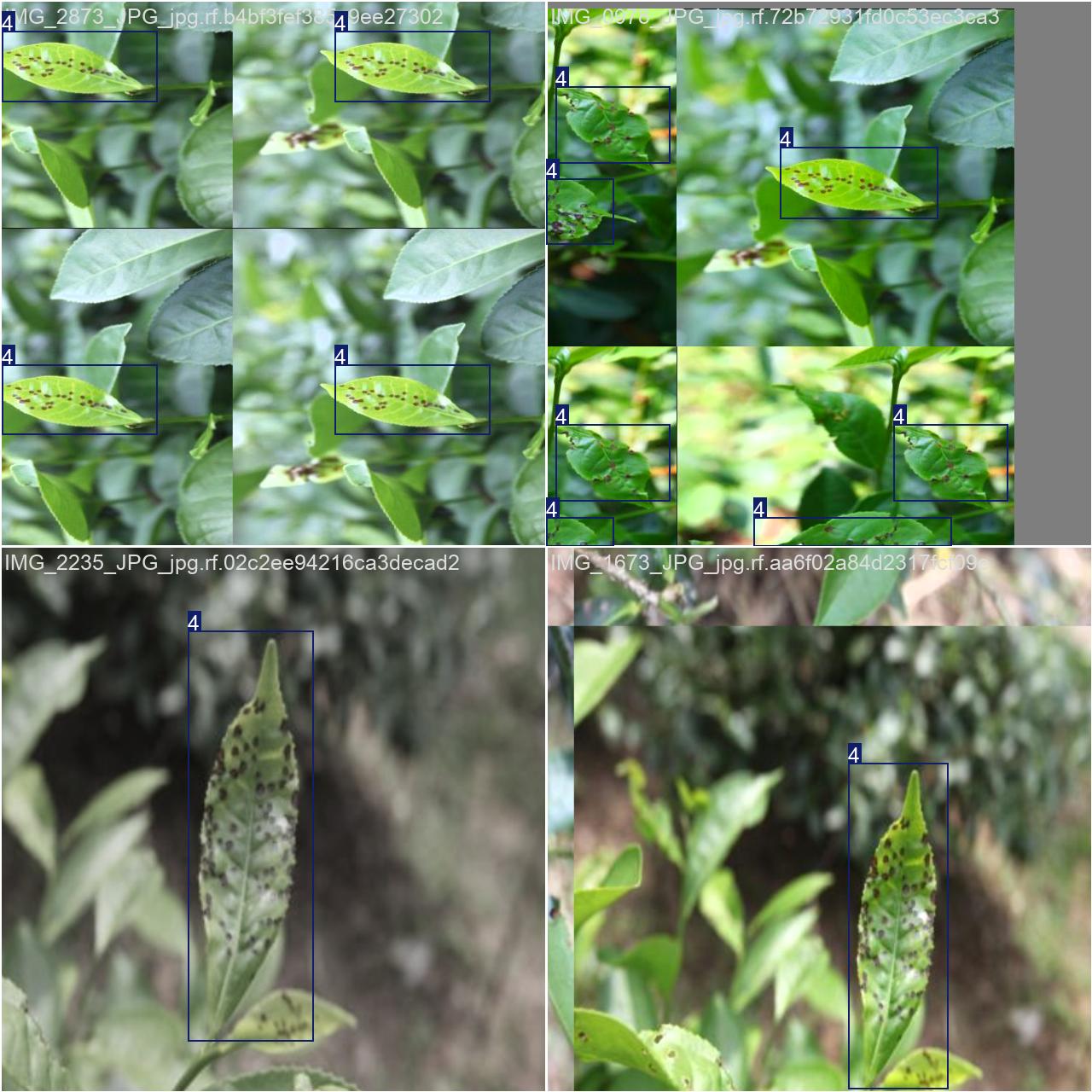 本研究使用了包含茶树病害情况的数据集,并通过 Labelimg 标注工具对每张图像中的目标边界框(Bounding Box)及其类别进行标注。基于此数据集,采用 YOLOv8n 模型进行训练。训练完成后,对模型在验证集上的表现进行了全面的性能评估与对比分析。整个模型训练与评估流程包括以下步骤:数据集准备、模型训练、模型评估。本次标注的目标类别主要集中于茶树病害情况。数据集总计包含 2195 张图像,具体分布如下: