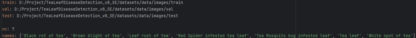 这个文件定义了用于模型训练和验证的数据集路径,以及模型将要检测的目标类别。