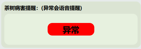 (1)异常语音提醒:(警告:茶树有病害,请及时防治!)