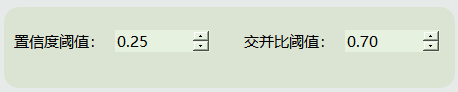 (2)交并比阈值:当前设置为0.70,表示系统只会认为交并比(IoU)超过70%的检测框为有效结果。交并比是检测框与真实框重叠区域的比值,用于衡量两个框的相似程度,值越高表明重叠程度越高。