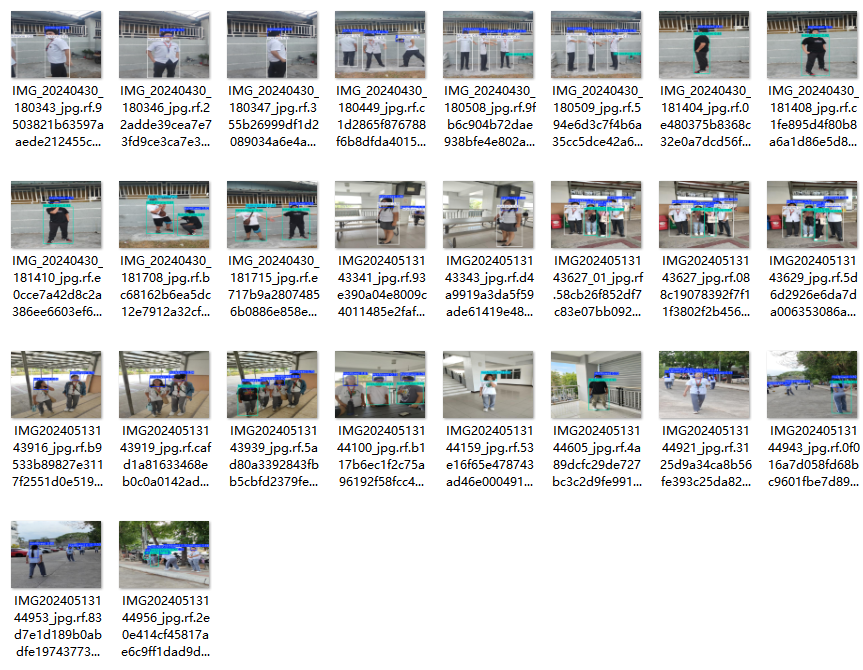 本研究使用了包含学校校服与发型合规性情况的数据集,并通过 Labelimg 标注工具对每张图像中的目标边界框(Bounding Box)及其类别进行标注。基于此数据集,采用 YOLOv8n 模型进行训练。训练完成后,对模型在验证集上的表现进行了全面的性能评估与对比分析。整个模型训练与评估流程包括以下步骤:数据集准备、模型训练、模型评估。本次标注的目标类别主要集中于学校校服与发型合规性情况。数据集总计包含 2730 张图像,具体分布如下: