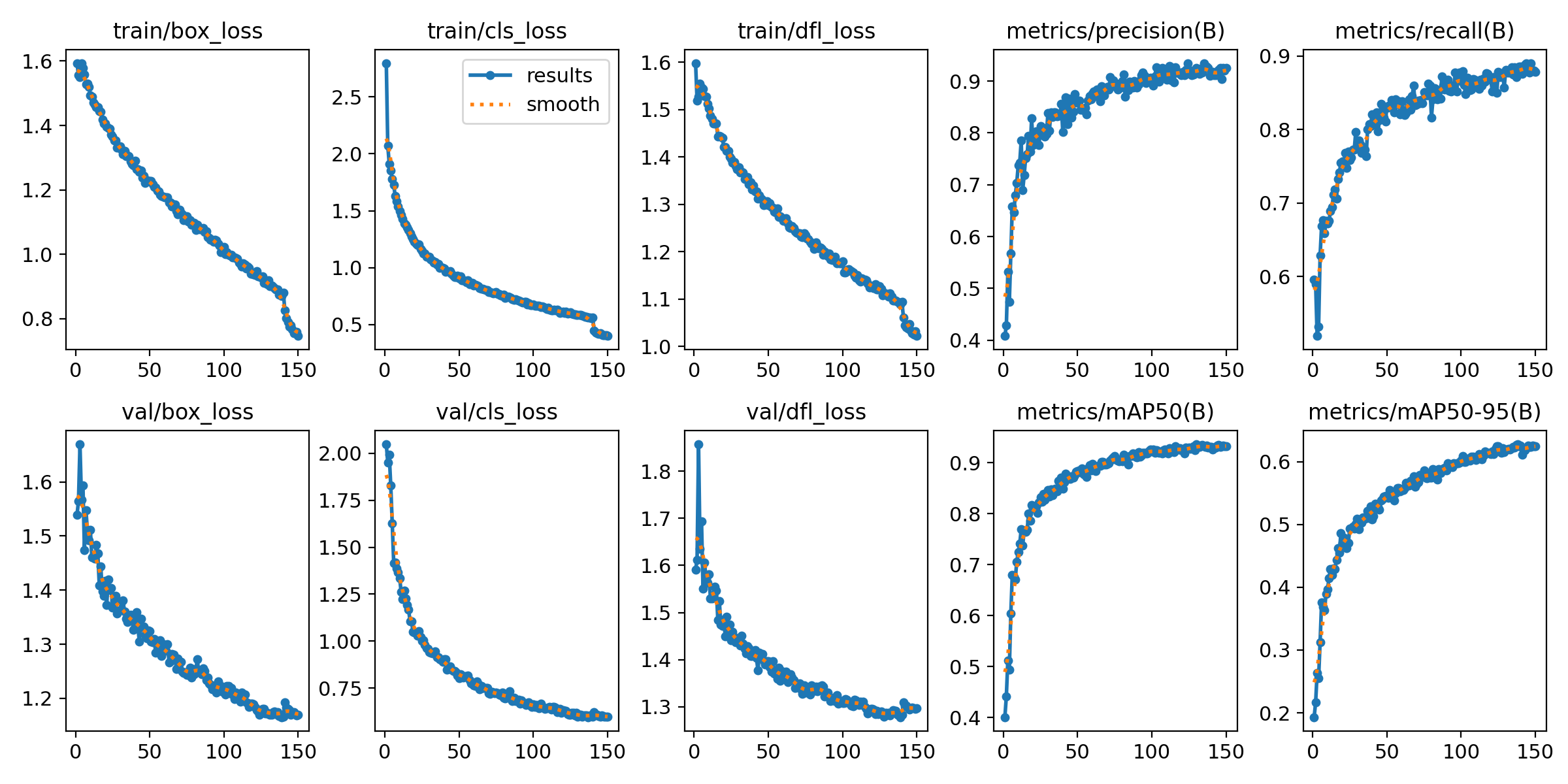 (3)表现出较高的训练效率,得益于YOLOv8模型的优化设计和高性能硬件的支持。