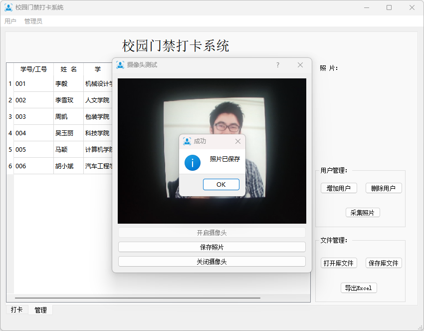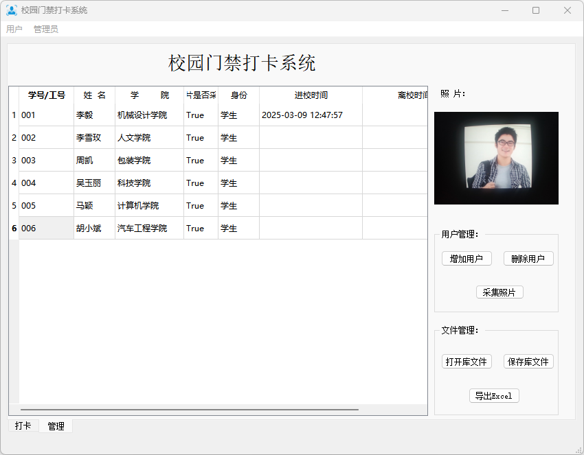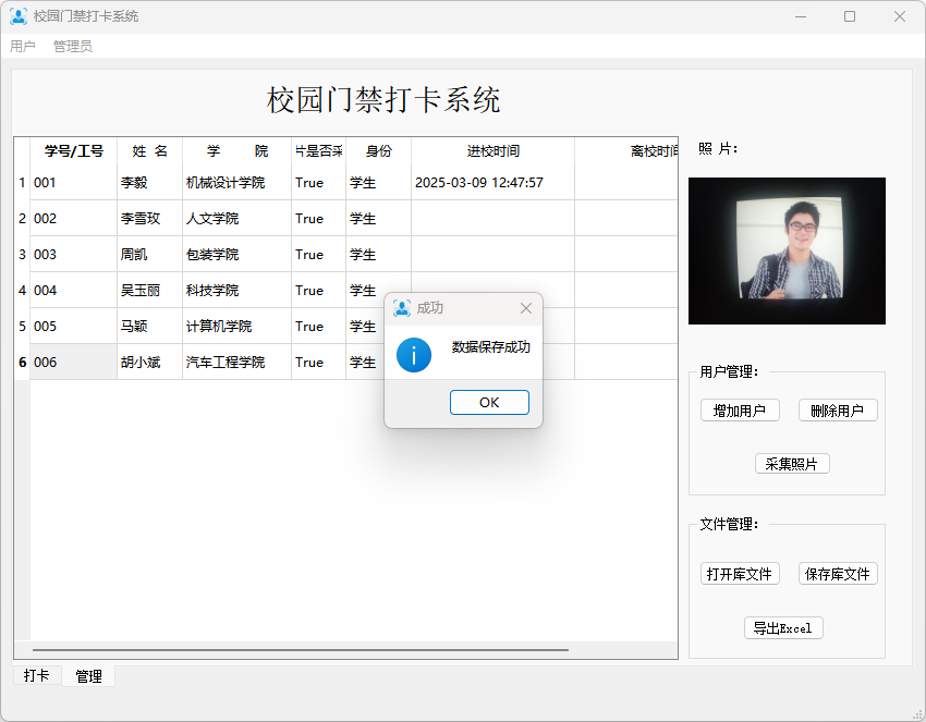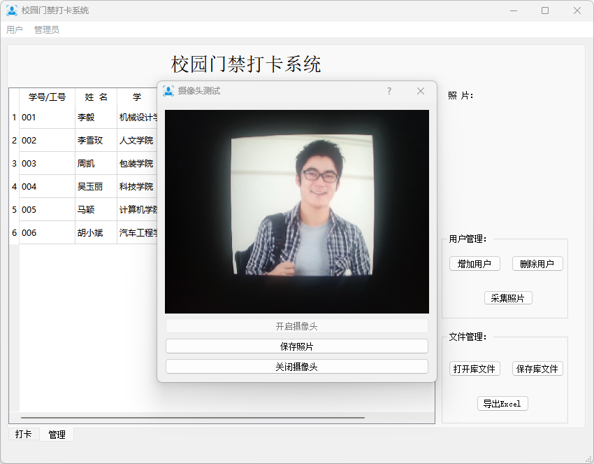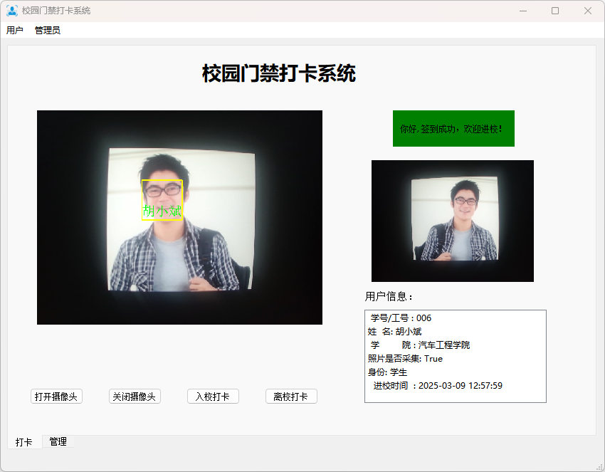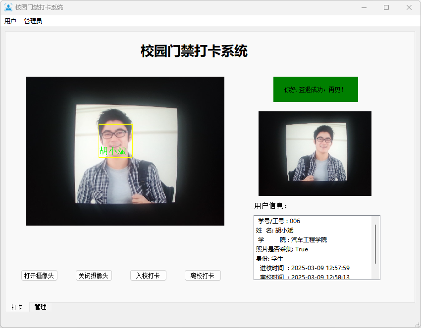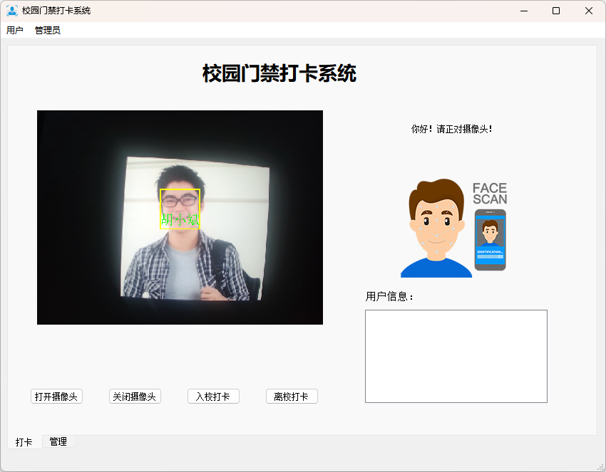 测试结果显示,系统运行稳定,识别准确率高,能够满足校园门禁管理的实际需求。此外,系统还具备良好的用户体验,界面友好,操作简便,为校园安全管理提供了有效的技术支持。