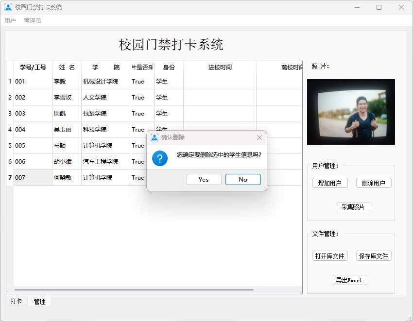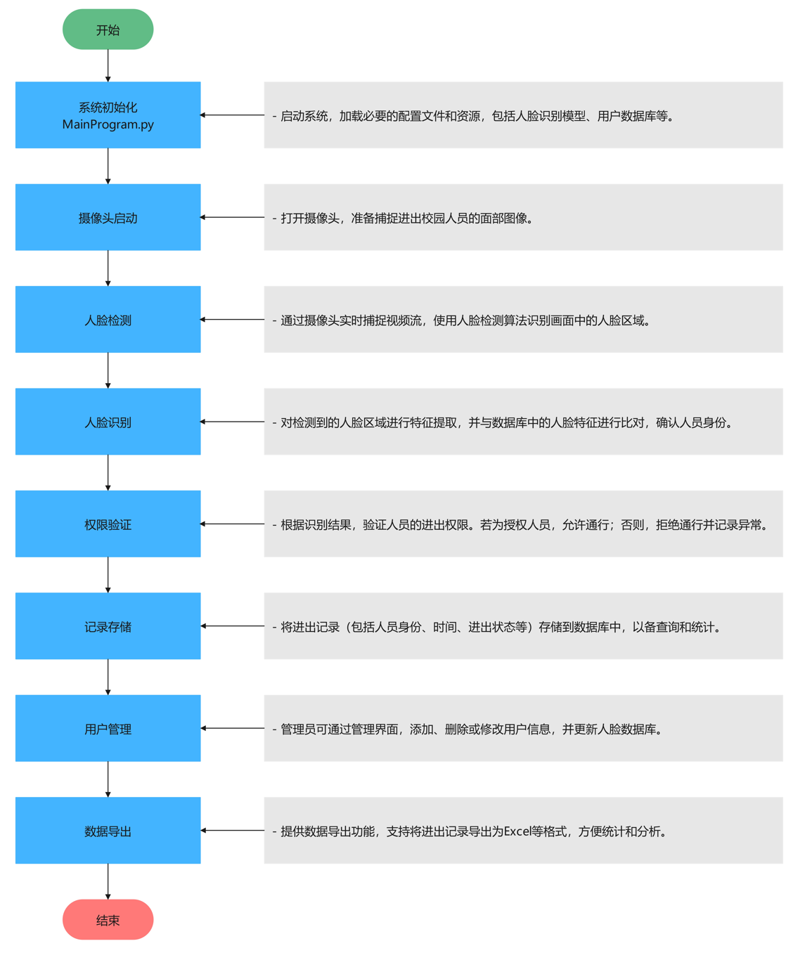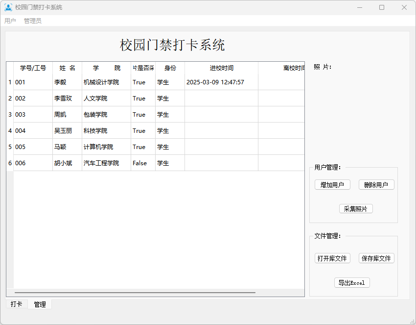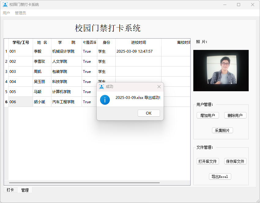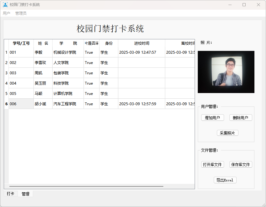 测试结果显示,系统运行稳定,识别准确率高,能够满足校园门禁管理的实际需求。此外,系统还具备良好的用户体验,界面友好,操作简便,为校园安全管理提供了有效的技术支持。