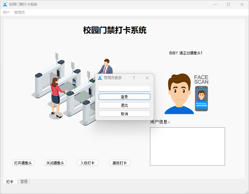 基于Python的人脸识别校园门禁打卡系统旨在利用计算机视觉技术,实现对校园出入人员的智能化管理。系统采用Python语言,结合OpenCV等开源库,构建了一个高效、可靠的人脸识别平台。通过摄像头捕捉进出校园人员的面部图像,系统能够实时进行人脸检测与识别,确保仅授权人员能够进入校园。相较于传统的门禁系统,该系统提高了安全性和管理效率,减少了人为干预的需求。