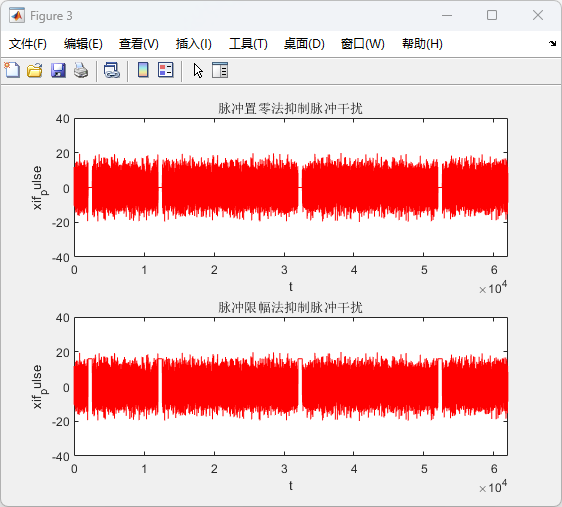 分析:两种方法均能有效削弱脉冲尖峰。置零法完全去除超阈值样点,但会引入信息丢失;限幅法则保留信号符号,但会引入一定波形畸变。总体来看,两者均能恢复信号的可用性。