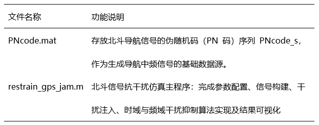 通过上述架构,本系统实现了一个从 参数配置 → 干扰注入 → 抑制处理 → 可视化评估 的完整闭环仿真流程,为北斗导航信号在复杂干扰环境下的抗干扰算法研究提供了高效、直观的验证平台。